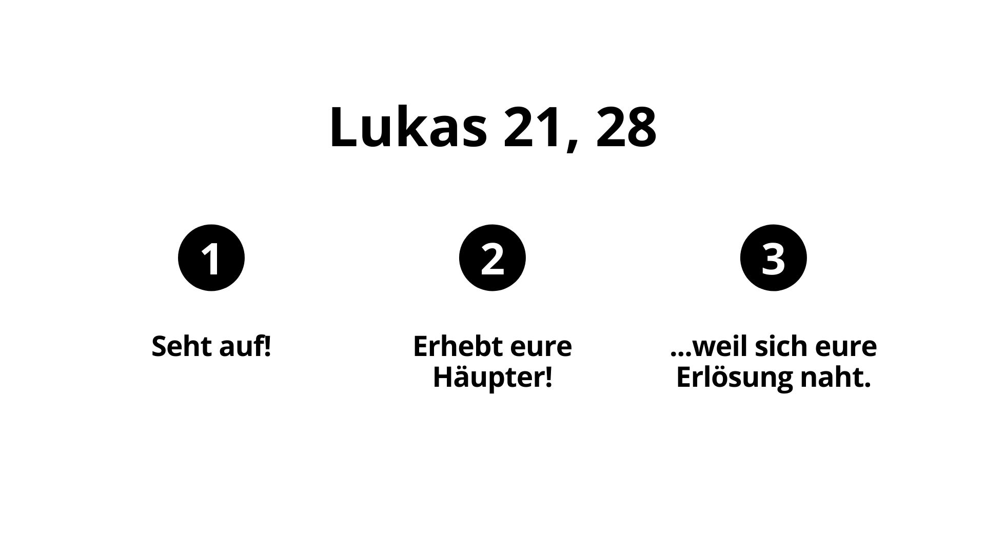SEHT AUF UND ERHEBT EURE HÄUPTER, WEIL SICH EURE ERLÖSUNG NAHT.
